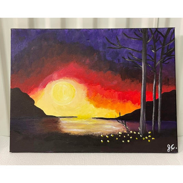Modern Impressionist Full Moon Nightscape Acrylic Painting Chairish